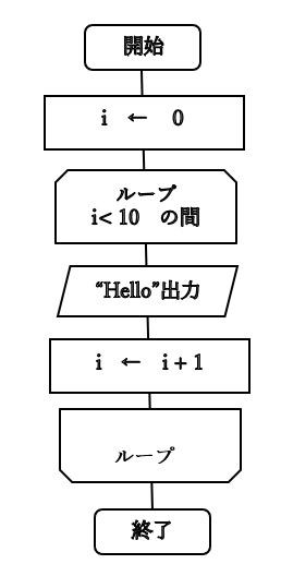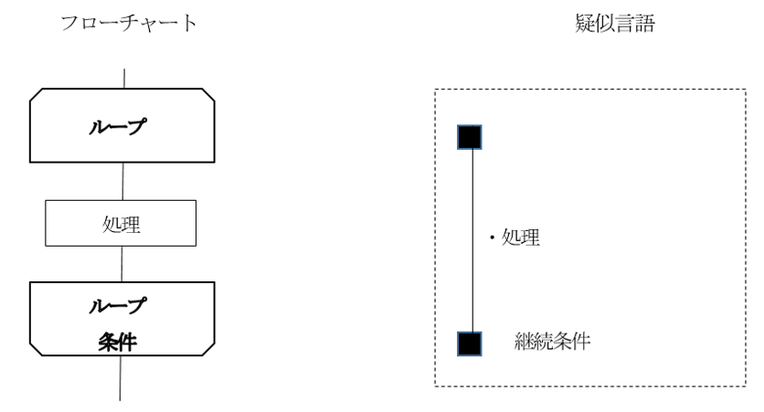 上から下に処理を書くことは同じ。長方形の図形記号は用いず、処理の頭に「・」をつける。